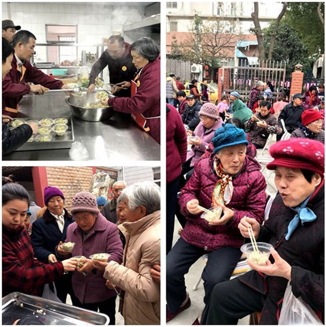 演出结束后,我们提供居民品尝香喷喷的菜饭,居民脸上都洋溢这幸福的笑容,异口同声道:“味道好极了!”